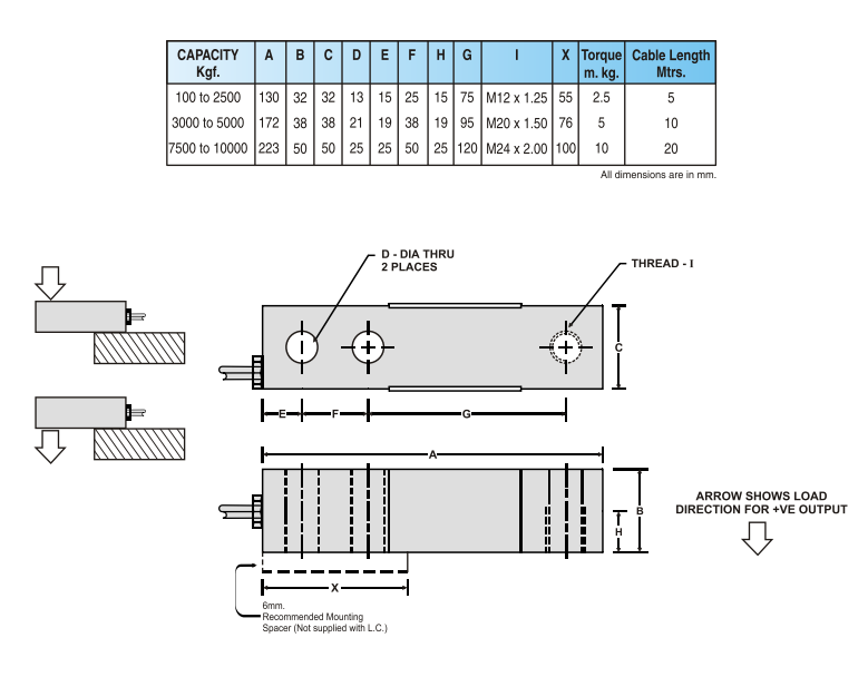 | Standard Capacities | 100*, 150*, 200*, 300,500*, 750 - Kgf 1, 1.5, 2, 2.5, 3, 5, 7.5, 10 - Tf |